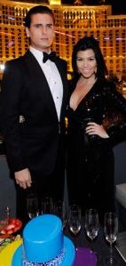 Kourtney Kardashian attended a New Year's party at Chateau Gardens in Las Vegas, together with Scott Disick. The pregnant lady opted for a sophisticated sparkly gown with a plunging V-neck and a thigh-high split. Kourtney paired her sequined Diane von Furstenburg gown with platform pumps by Louboutin and a Judith Leiber clutch. Her hair was in a sleek style and her make-up consisted of statement eye make-up and nude lippie.